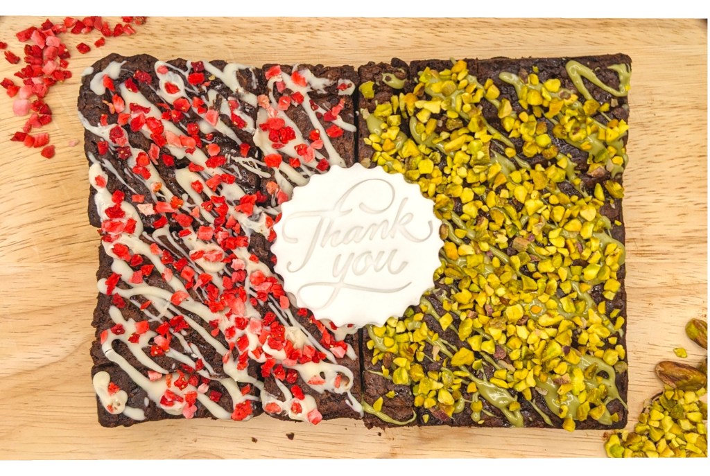 Indulge in the rich, fudgy goodness of our Vegan Chocolate Brownie Celebration Slab!