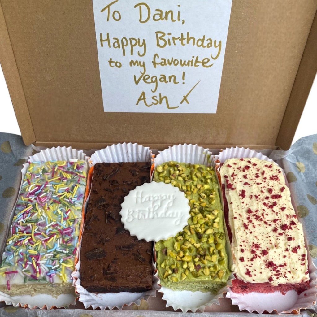 Indulge in the sweet fluffy goodness of our Vegan Letterbox Cake Slices!