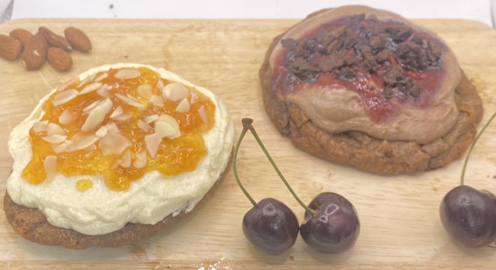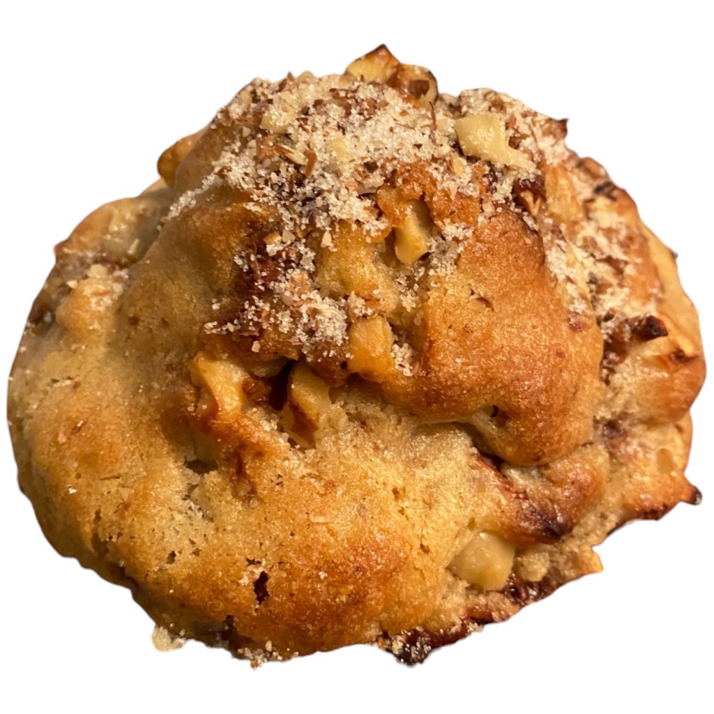 Plain flour (Fortified WHEAT Flour (WHEAT Flour, Calcium Carbonate, Iron, Niacin (B3), Thiamin (B1)), GLUTEN), Bicarbonate of Soda, Salt, Applesauce, Vegan Baking Block (Vegetable Oils in varying proportions (70%) (Rapeseed, Palm, Sunflower), Water, Salt (1.5%), Emulsifiers (Lecithin, Mono and Diglycerides of Fatty Acids), Acid (Lactic Acid), Colours (Beta-Carotene), Vitamin A and D, Flavourings), Brown Soft Sugar, White Granulated Sugar, Vanilla Bean Paste, Vegan Oat Vanilla Chocolate Chips, Oat Milk (OATS), Almond Milk (NUTS), SOYA Milk (SOYA), Cornflour.