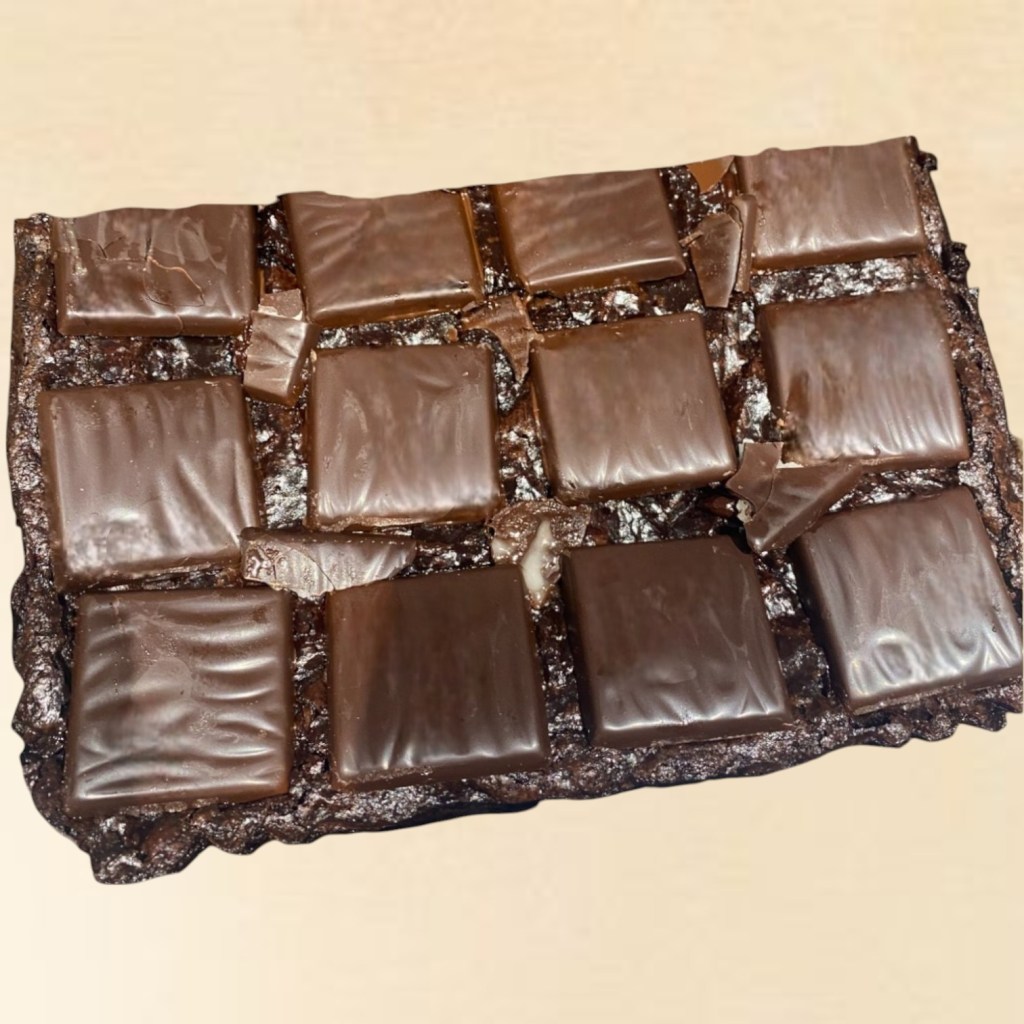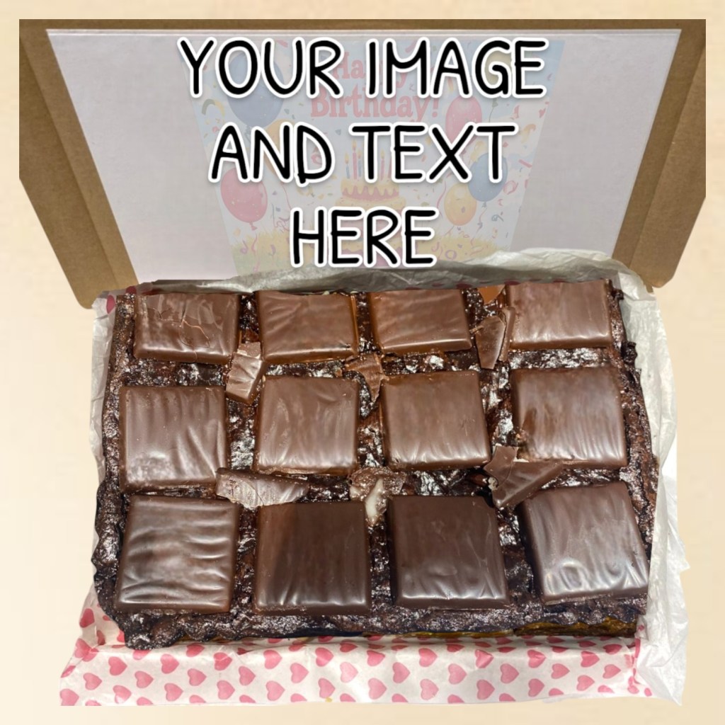 Indulge in the rich, fudgy goodness of our Vegan Mint Chocolate Chip Letterbox Brownie Slab, made with mint flavoured brownie batter and mint choc chips, then drizzled with mint icing and topped with chocolate mint thins!