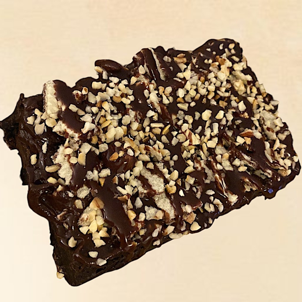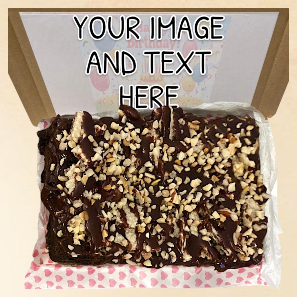 Image for illustrative purposes only – your brownie will come in a fabulous slab for you to carve out your own perfect squares (hopefully with no one telling you they’re too big)!