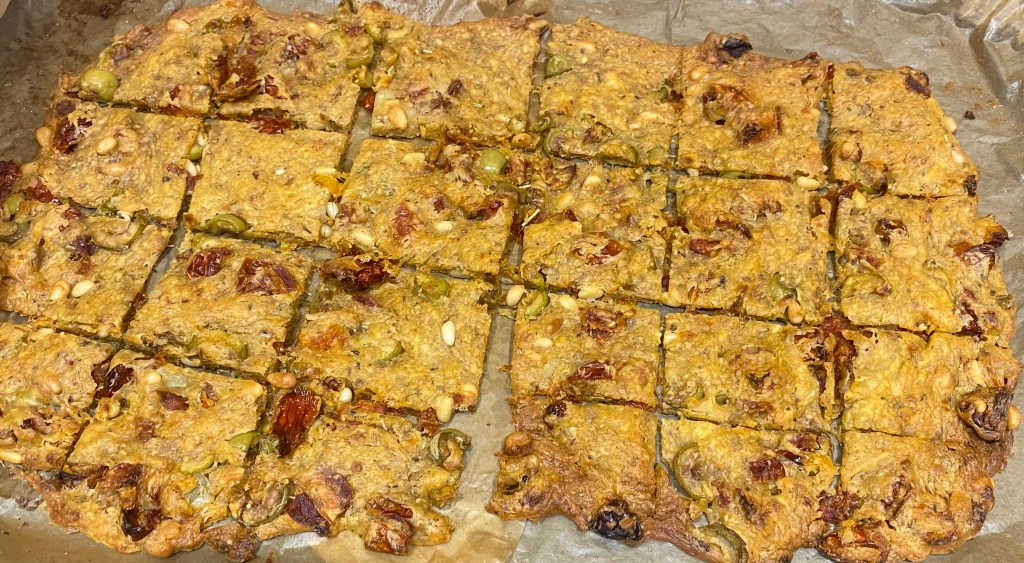 Sundried Tomato and Olive Sourdough Crackers